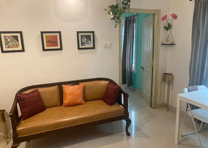 The 37 m² Gachibowli House Of Arts 204 Elina Stays Hyderabad is located approximately a 10-minute ride from the low - key urban park "Hyderabad Botanical Garden" and offers Wi-Fi for either business or leisure. The nearest bus stop GPRA Quarters Enterance is 300 metres away, while the Cyber Conventions is 3.2 km away.